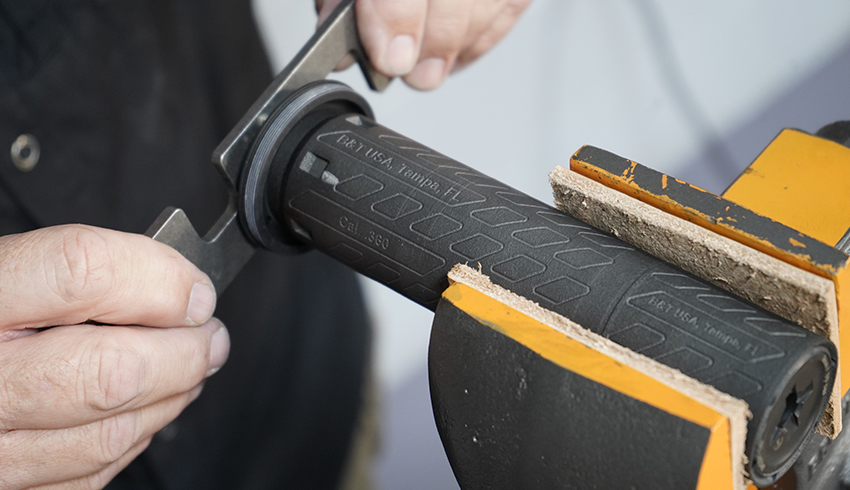 Once properly aligned and centered, tighten fully onto the suppressor body.